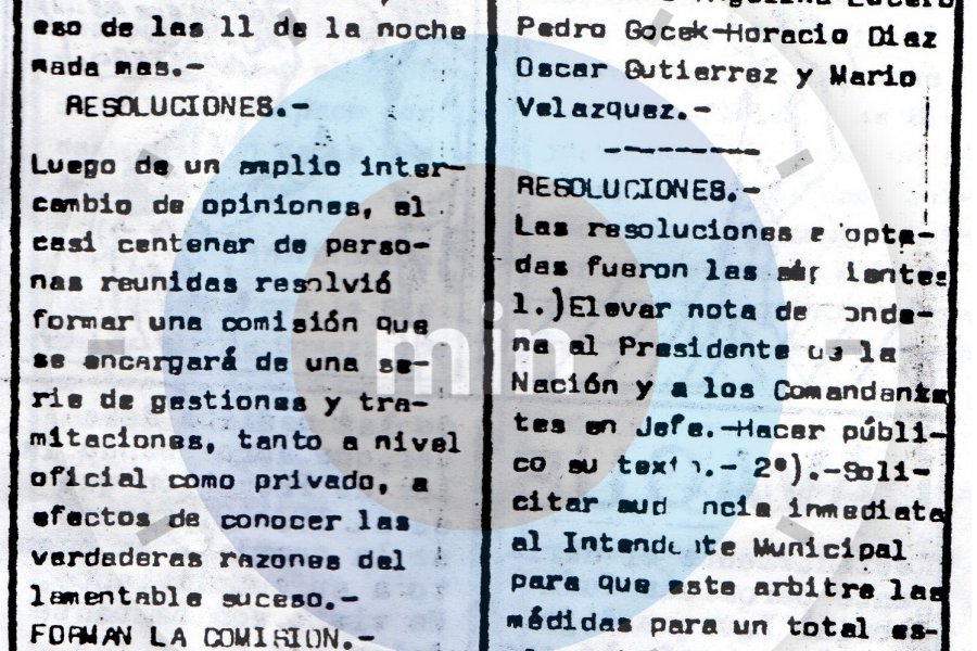 “Adelantamos que el capitán Robacio inicio la misma dando lectura a un breve documento (..) entre cuyos términos incluyó los siguientes: Por que no separar de un accidente desgraciado que nos duele más que los muertos de las Malvinas. La verdad. - olvidan acaso que un conscripto no es un ciudadano igual que la ciudadanía de Río Grande ¿A quién quieren condenar?”