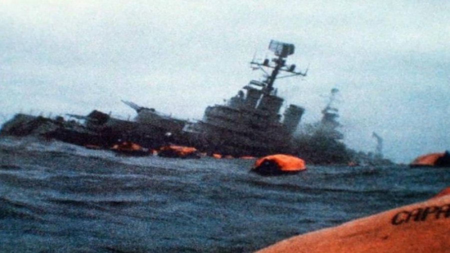 El Belgrano –una leyenda–, ya inclinado después del primer torpedo, ha sufrido una una segunda explosión.