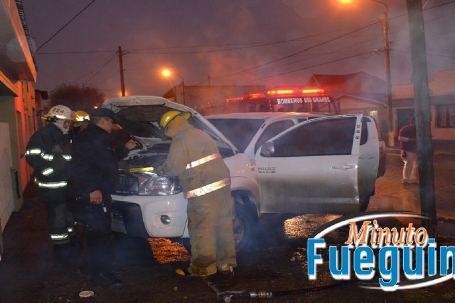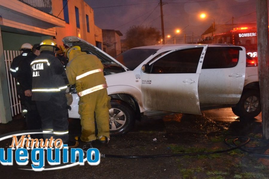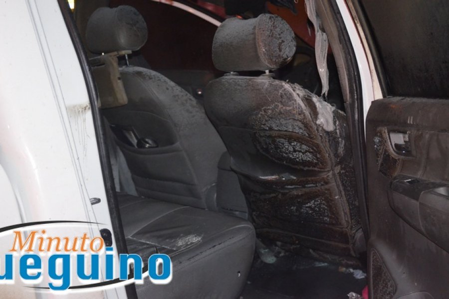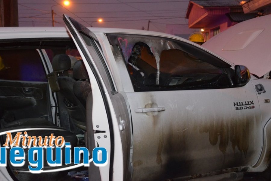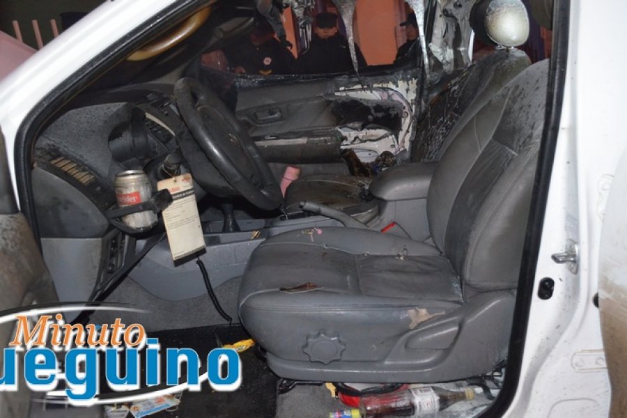 Pocos minutos después la camioneta estaba en llamas, debiendo actuar los bomberos, a pesar de lo cual hubo importantes daños en todo el habitáculo del rodado.