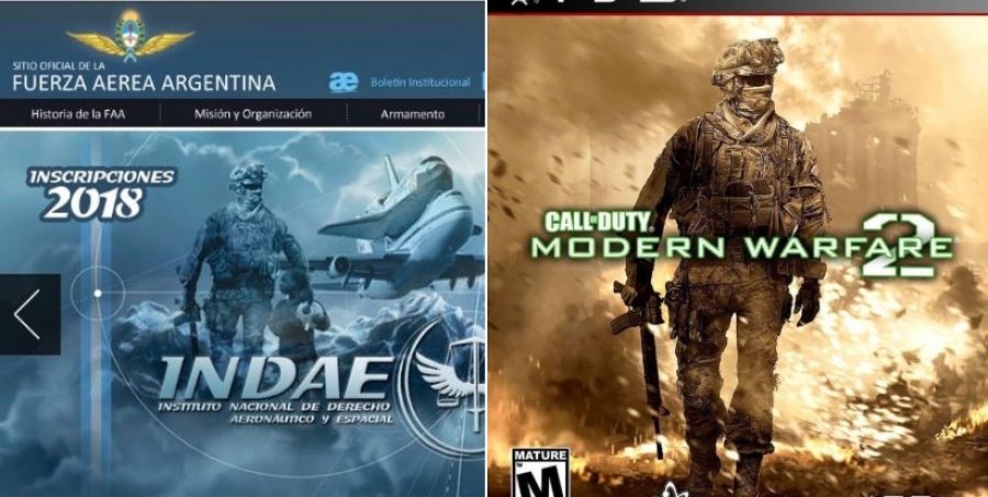 Lo curioso, es que en la web oficial se promociona la inscripción con un banner compuesto por un niño que observa con admiración a un soldado, un Shuttle Carrier Aircraft de la NASA -el clásico avión que lleva el transbordador- y ¡un personaje del Call of Duty!