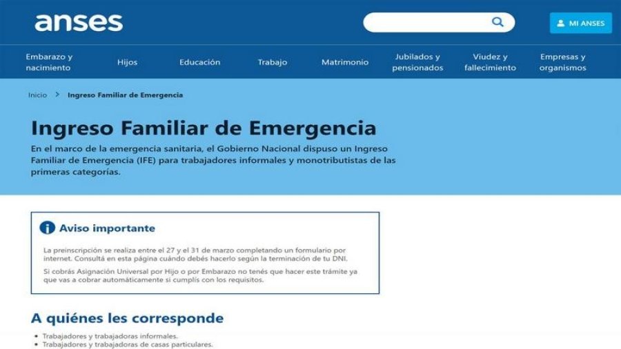 Así, se podrán corregir los datos para poder recibir el bono extraordinario de $10.000 dispuesto por el Gobierno para los sectores de menores recursos durante la cuarentena por coronavirus .