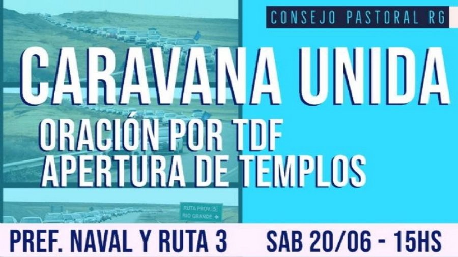 El Consejo Pastoral de Río Grande a través del programa radial “Un Gran Día” invita a la “Caravana Unida”, oración por Tierra Del Fuego y apertura de templos. La misma será en auto el próximo sábado 20 de junio a partir de las 15 horas.