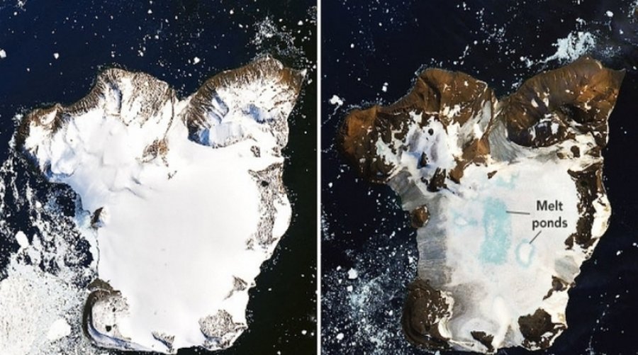 Una rápida fusión de la capa de hielo en pleno verano austral en la isla Eagle, junto a la Península Antártica, se hace patente en imágenes de satélite de la NASA tomadas en las últimas semanas.