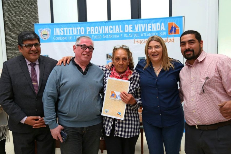 La gobernadora Rosana Bertone encabezó este martes la entrega de 29 lotes ubicados en la Margen Sur de Río Grande. El acto se realizó en las instalaciones del Instituto Provincial de la Vivienda y contó con la presencia del vicegobernador Juan Carlos Arcando y de la vicepresidenta del IPV, Laura Montes, las familias beneficiarias y referentes barriales.