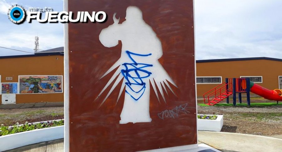 Un grupo de vándalos, que aún no fue identificado, realizó pintadas sobre la flamante Plazoleta de la Divina Misericordia, emplaza en el barrio AGP, que aún no ha sido inaugurada por la Municipalidad de Río Grande.