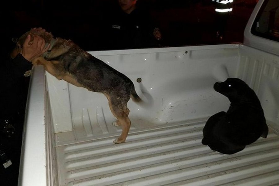 Sin pensarlo los uniformados agarraron a los dos perros y los trasladaron hasta la caja de un patrullero, en donde los contuvieron hasta que el fuego sea apagado. Afortunadamente ambos animales se encontraban en excelente estado, todo gracias a la rapidez policial.
