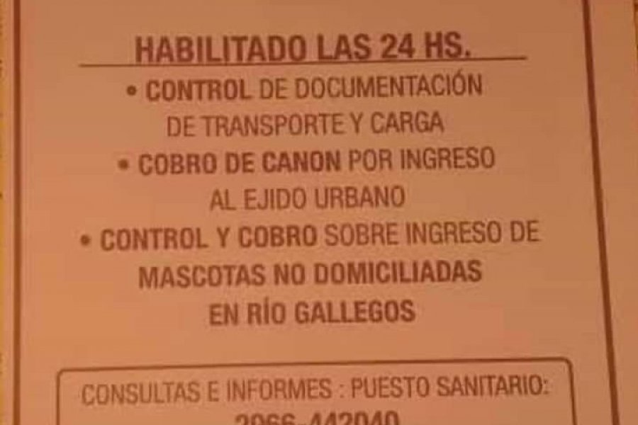 La imagen en cuestión da cuenta del nuevo Puesto de Control de Transportes y Cargas ubicado en Güer Aike, ubicado en el kilómetro 2583, que esta habilitado las 24 horas del día donde se desarrolla: