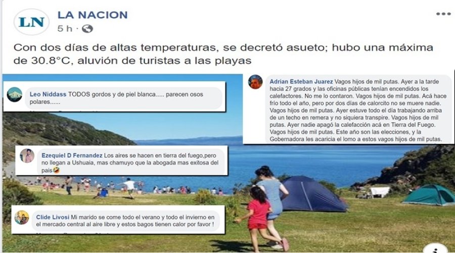 El diario La Nación “Calor, bikinis y caipirinhas, el impensado verano que vive este año Tierra del Fuego”. Otra de las notas nacionales que causo repercusión fue el de El Tribuno, quien tituló: “Ola de calor: en Tierra del Fuego no van a trabajar porque hacen 30°”.