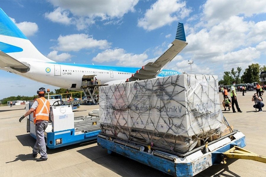 El vuelo AR1601 de Aerolíneas Argentinas con el segundo componente de las vacunas Sputnik V arribó a las 10:48 de hoy al aeropuerto Internacional de Ezeiza, una hora antes de lo previsto, procedente de la estación aérea Internacional Sheremétievo, en Moscú.