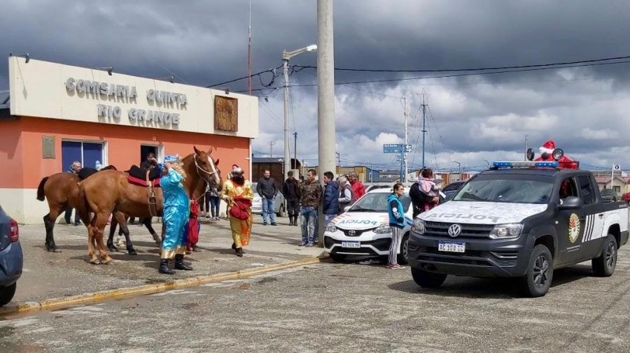 Durante esta tarde los Reyes Magos y Papá Noel salieron de la Comisaría Quinta en compañía de uniformados de la Comisaria y Servicios Especiales (Sección Rural).