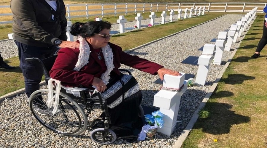 Los militares británicos honran a Elma Pelozo, madre del soldado Gabino Ruiz Díaz, quien por primera vez llegó -con sus 80 años y en su silla de ruedas, porque tuvieron que amputarle las piernas por su diabetes- hasta la tumba identificada de su “Cambacito”, como lo llamaban en su Colonia Pando natal, un paraje a 140 kilómetros de Corrientes capital.