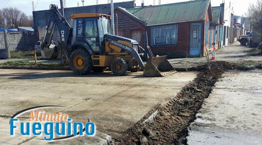 En el marco de la obra denominada “Instalación Cámaras Boca de Registro - Aliviadores – red cloacal Río Grande Año 2016” la empresa Paone & Cía S.A. realiza este martes 04 tareas de reposición de pavimento de calzada en la intersección de las calles: