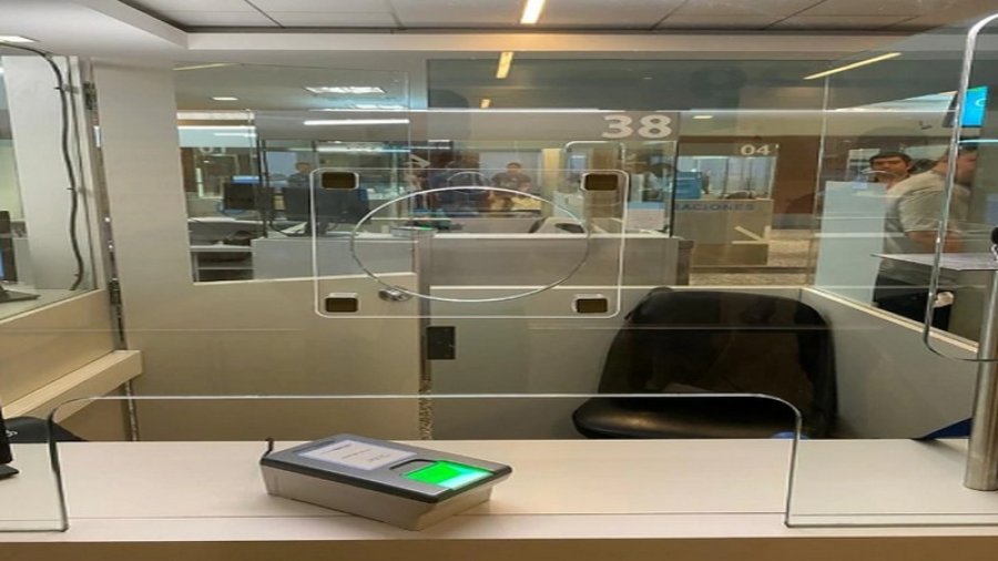 Las cabinas de Migraciones, ahora con doble vidrio.