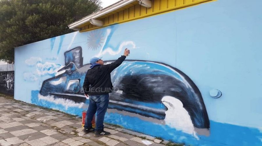 Durante los últimos días vecinos de la ciudad de Río Grande se han percatado de que en la intersección de calle Thorne y Av. San Martin se encuentran pintando un mural del submarino perdido.