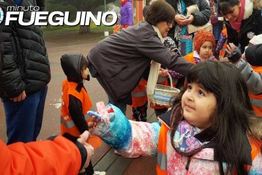 En la jornada de hoy niños y niñas del Centro Infantil Integrado recorrieron la zona céntrica de la ciudad, precisamente en la zona de la Plaza Almirante Brown donde repartieron escarapelas en celebración del 18 de mayo día de la escarapela.