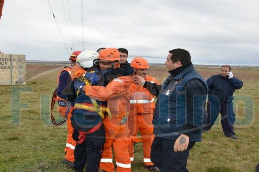 Finalmente luego de tres horas y media pudieron bajar a Esteban desde los 48 metros de altura, mientras el joven era trasladado al Hospital personal bomberil y de Defensa Civil se fundieron en un fuerte abrazo de compañerismo por el gran trabajo que habían realizado al salvar la vida de esta persona.