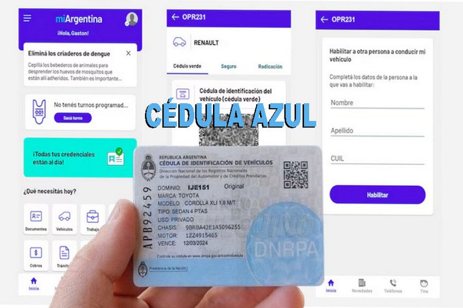 Ya no existe la cédula azul desde el 13 de mayo, con lo cual el modo de autorizar a un tercero a conducir un automóvil o motocicleta del que no es titular, es habilitar que la cédula de identificación del automotor, la famosa cédula verde, para que aparezca en el perfil de Mi Argentina de la persona autorizada. Con ese documento digital, no sólo se puede circular por todo el territorio nacional, sino también salir provisoriamente del país con ese vehículo.