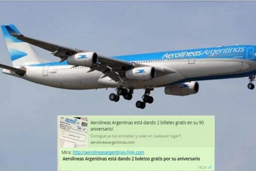 Desde junio circula por WhatsApp una estafa con pasajes de Aerolíneas Argentinas, que esta semana se renovó con motivo del aniversario de la compañía.