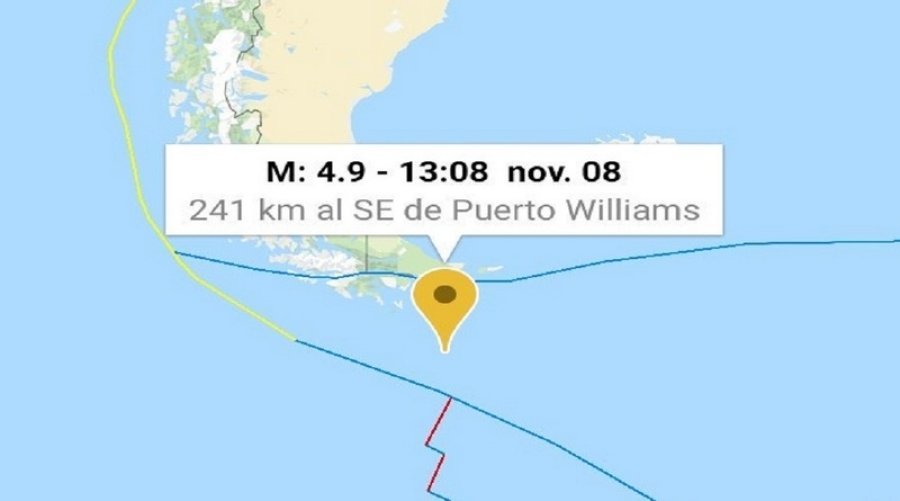 El último sismo registrado ocurrió ayer, a eso de las 13.08 horas, a 241 km al sureste de Puerto Williams, y según el monitoreo efectuado por la estación de monitoreo de la Universidad de Chile, este alcanzó una magnitud de 4.8.