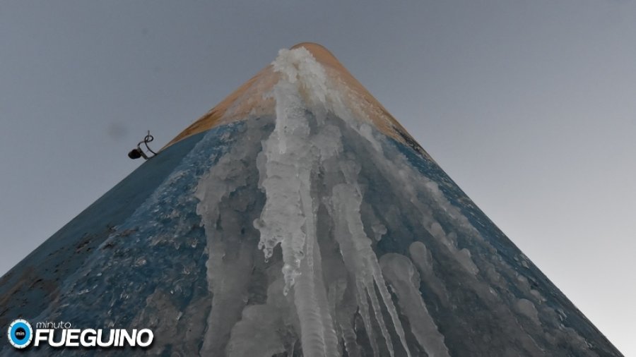 Durante el fin de semana la torre de agua de la Escuela N° 21 emplazada sobre Av. San Martin y Prefectura Naval, sufrió una rotura sobre la parte media de la cisterna de hormigón. Como consecuencia de las bajas temperaturas el agua filtrada se congeló sobre una gran parte de la vereda dificultando el tránsito en las primeras horas del domingo para quienes concurrían al establecimiento a votar.