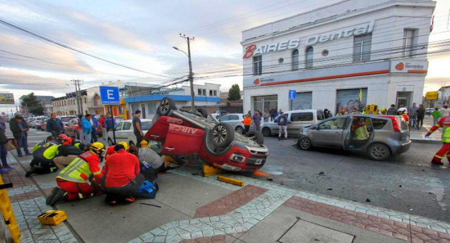 En la noche de hoy viernes, se produjo una fuerte colisión entre un vehículo Nissan Note y un Station Wagon Citroen, este último de patente argentina. El hecho, ocurrido en la esquina de calles O’Higgins y José Menéndez, en el centro de Punta Arenas, dejó cuatro personas heridas.