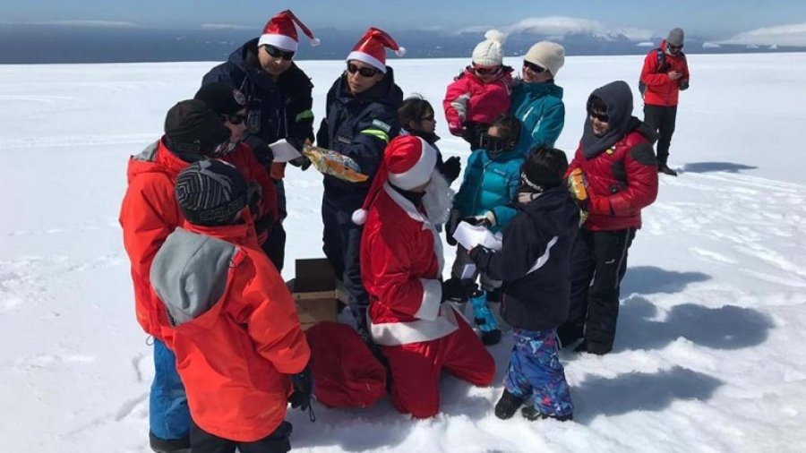 Papá Noel entregó regalos navideños a los niños que viven en la Base Permanente Esperanza de la Antártida, la única de Argentina donde residen grupos familiares y donde funciona la Escuela 38 \"Presidente Raúl Ricardo Alfonsín\", según informó un comunicado del ministerio de Defensa de la Nación.