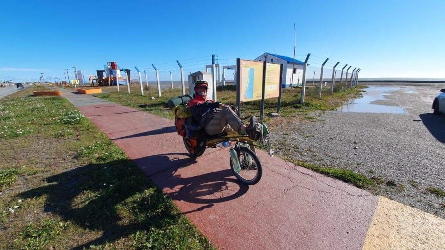 “Es un tipo de bicicleta muy confortable, para las personas que tiene problemas en la cintura, esta bicicleta es muy buena, es más cómoda que la bicicleta normal, el único problema es que es más pesada” sostuvo el viajero italiano en dialogo con Minuto Fueguino.