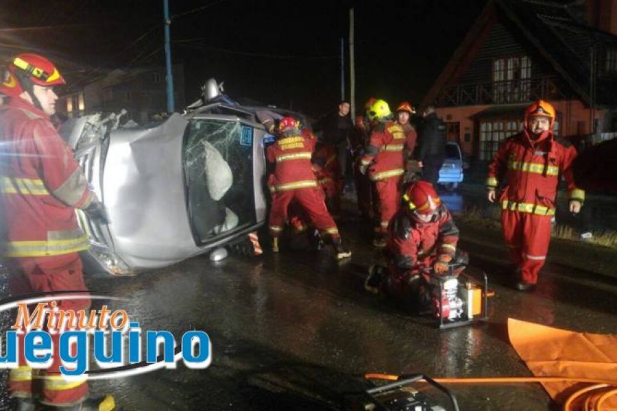 En el lugar trabajo bomberos voluntarios para sacar a esta persona que quedó atrapada en el habitáculo del rodado de alta gama. Luego de unos minutos fue trasladado al Hospital Regional de Ushuaia, en donde personal sanitario constato en primera instancia un fuerte olor etílico.