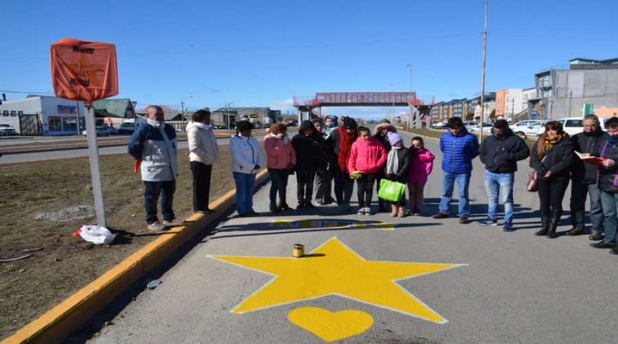 En el marco de la Campaña Nacional de Concientización Vial “Estrellas Amarillas”, en la jornada de este sábado se pintó un nuevo símbolo para la reflexión en Rio Grande. La estrella amarilla se pintó frente al puente peatonal en memoria de Raquel Cabrejos, la mujer que perdió la vida el 17 de agosto pasado por un accidente ocurrido sobre la Ruta 3.