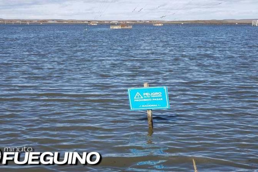 El rio Grande se desbordó a la altura de predio de Radio Nacional en la Circunvalación de calle Perón, en ese lugar debieron colocar un cartel alertando por alta tensión.
