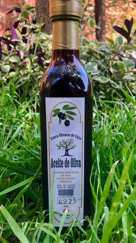 Se trata del "Aceite de Oliva primera prensada en frío Extra Virgen, Finca Olivares de Cuyo", en su presentación de 500cc y con fecha de vencimiento de marzo de 2026.