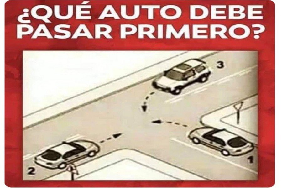 “El 3 es único que tiene línea punteada y viene por la derecha del 2 que tiene línea llena”; “El 1, el 3 está por cometer una infracción”; “Primero el 3, luego el 1 que tiene un cartel de ceda el paso, pero otro del lado del 2 que le da prioridad″, “El 1 tiene prioridad de paso con respecto al 2 y el 3, con respecto al 1. Mi conclusión es 3/1/2″, fueron solo algunas de las soluciones que arriesgaron los usuarios.