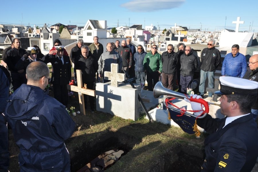 Luego, los presentes acompañaron el cortejo fúnebre hasta el cementerio local, donde el Trompa de la Armada Argentina le dio su último adiós con su clarín.