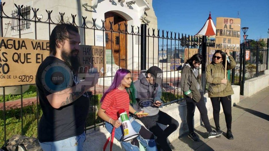 En Río Grande el encuentro se concretó en la Torre de Agua (frente a la Plaza Almirante Brown) para comenzar a marchar a las 19.00. Allí estuvieron presentes referentes de la Biblioteca Popular Kau Kren bajo el lema “el agua de Mendoza y Chubut no se negocian”.