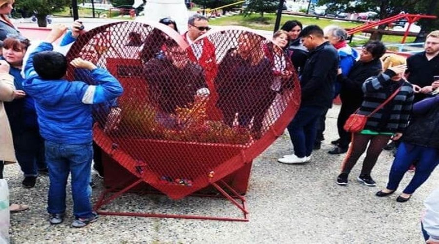 Mujeres Voluntarias de Río Grande y en representación de la Fundación Garrahan, la referente Mónica Becerra ultiman detalles junto a la Empresa Total, Autosur RG y el Municipio de la ciudad de Río Grande, para realizar los Corazones Gigantes 2. Cada una de las entidades mencionadas aportaron los elementos para la realización de estos Corazones Solidarios.