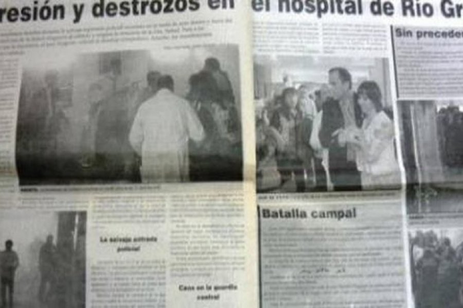 Hoy, 28 de diciembre, se cumplen 17 años desde la violenta represión desatada en el Hospital de Río Grande, durante el gobierno de Carlos Manfredotti y Daniel Gallo. Fue cuando efectivos de la policía provincial irrumpieron en el nosocomio golpeando a trabajadores y vecinos, arrojando gas lacrimógeno, disparando postas de goma y provocando destrozos de todo tipo; para desalojar el lugar donde se encontraba la Secretaria de Salud, María Rosa Sahad, quien era increpada por los manifestantes. Con la acción represiva, terminaron siendo afectados incluso algunos pacientes y sus familiares.