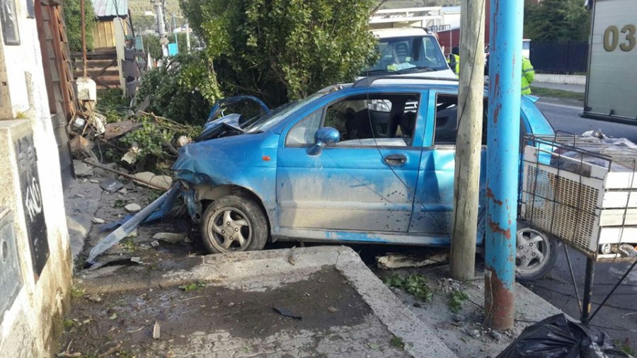 Dos personas resultaron con heridas graves luego de que el auto en el que se desplazaban se subiera a la vereda y chocara contra unos árboles que se encuentran en la vereda, un cesto de residuos y parte de una vivienda particular en calle Perón Sur entre Guadacosta Rio Iguazy y Ruiz Galán de Ushuaia. Una mujer de entre 30 y 35 años conducía un automóvil Chery, modelo QQ, color azul, y era acompañada por un hombre de edad similar, de los cuales por el momento desde la policía de manera oficial no se conocieron los datos.
