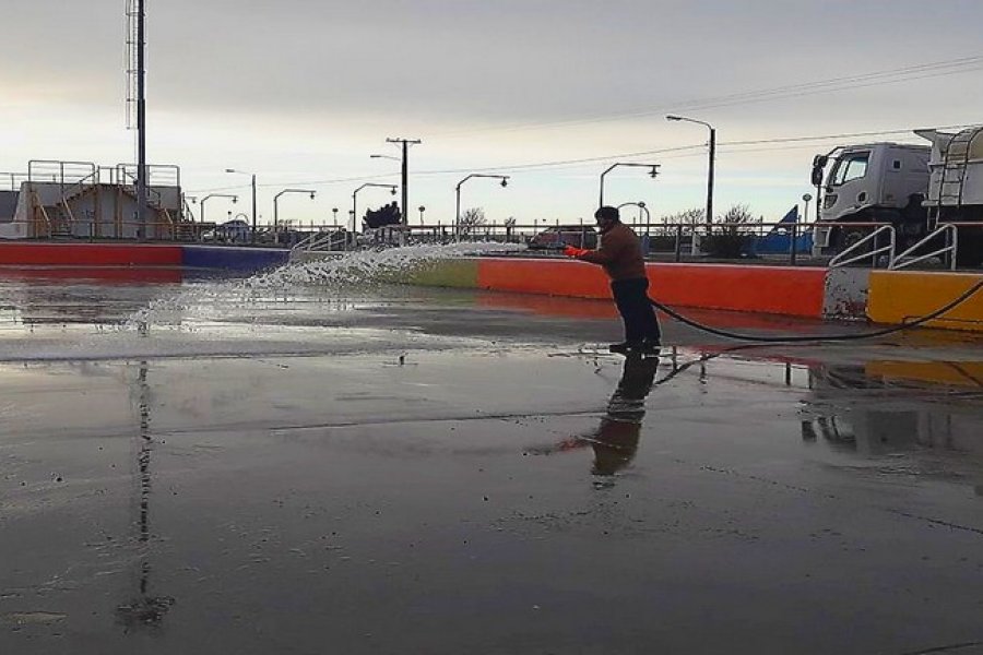 A través de la tarea a cargo de Obras Sanitarias, el Municipio de la ciudad comenzó trabajos de acondicionamiento de la pista de patinaje que se encuentra en la Plaza de las Américas, junto al Cono de Sombras.
