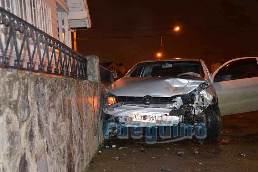 Producto del violento impacto la camioneta terminó impactando contra el muero de una vivienda situada en la dicha intersección. Su conductor fue identificado como Paulo Adrian Mihoevich .