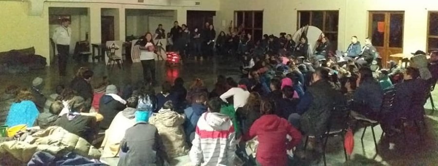 El encuentro con los chicos duró aproximadamente dos horas e incluyó un fogón con algunos espíritus simulando la ceremonia del Hain, y como iniciación a una nueva etapa para ellos, los participantes se pintaron la cara tal como lo hacían los selk’nam según su estado de ánimo.
