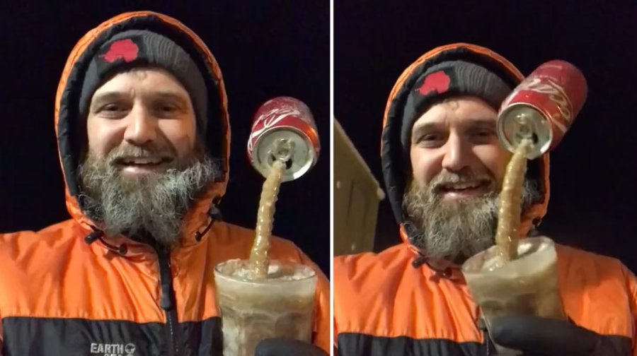 Era tanto el frío que el hilo de gaseosa que había entre ambos también se había congelado. La lata quedó en el aire y ‘Matty’ grabó el divertido momento. “No salió bien”, agregó al final del video. “Traté de servirme la lata en un vaso pero en su lugar obtuve Coca Cola congelada”, escribió en la descripción de la publicación.