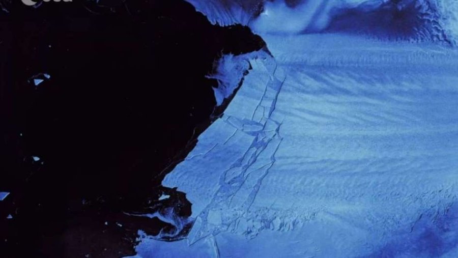 Su frente de hielo flotante, que tiene un espesor promedio de aproximadamente 500 metros, ha experimentado una serie de eventos de desprendimiento en los últimos 30 años, algunos de los cuales han cambiado abruptamente la forma y la posición del frente de hielo.