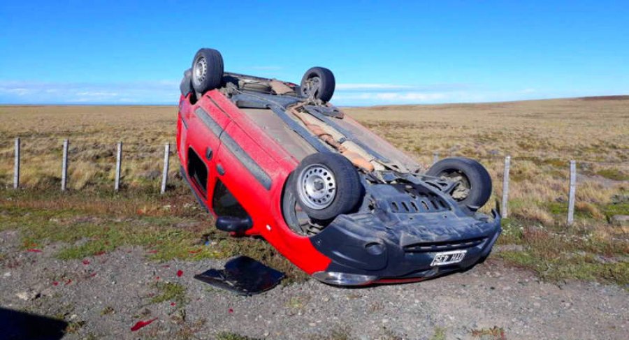Tres integrantes de una familia con domicilio en Río Grande sufrieron lesiones leves al volcar el vehículo en que se conducían, cuando transitaban territorio chileno, en dirección sur-norte, camino a Bahía Azul.