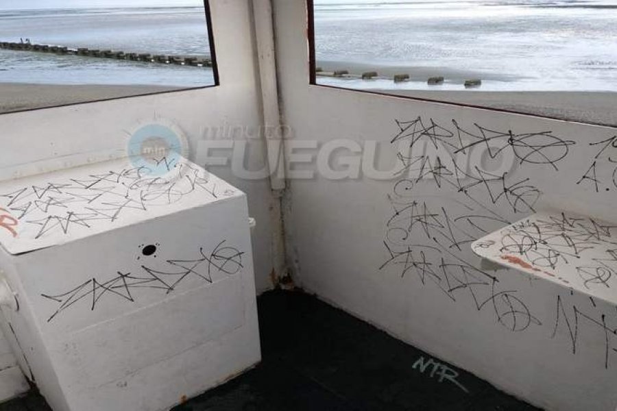 En el mes de octubre desde el Municipio de Río Grande a través de Obras y Servicios Públicos, comenzaron con las tareas de restauración y puesta en valor del histórico “Barquito Azul”, emplazado en la costa marítima sobre Avenida Elcano de nuestra ciudad. A pocos días de su reinauguración, desconocidos efectuaron una gran cantidad de pintadas sobre la parte alta del navío que funciona actualmente como mirador.