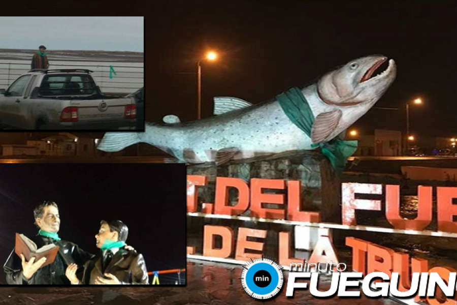 Durante esta madrugada varios monumentos de la ciudad de Rio Grande amanecieron con pañuelos verdes. Entre ellos Padre Zink, los animales de la plaza de Los animales, La Trucha, Don Bosco, entre otros