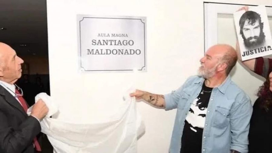 Recordemos que la semana pasada Sergio Maldonado y Andrea Antieco, familiares de Santiago, se presentaron en la sede de Río Grande de la Universidad Nacional de Tierra del Fuego para brindar una charla sobre la violación de Derechos Humanos en Democracia. Durante el acto la universidad inauguró su aula magna con el nombre de \"Santiago Maldonado\", para eso, estuvo presente el rector de la institución, Juan José Castelucci.