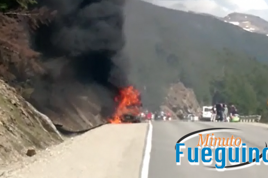 Cerca de las 14:00horas de este sábado sobre la Ruta Nacional N°3, en el kiometr0 3012, a pocos metros del mirador del paso Garibaldi un vehículo comenzó a incendiarse por problemas mecánicos.