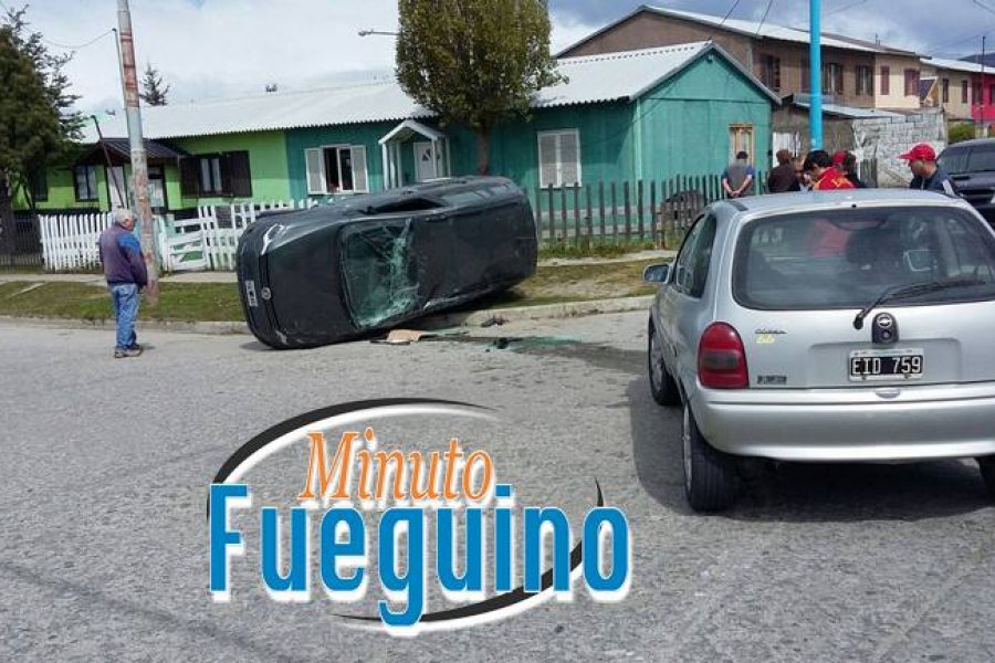 El accidente vial se produjo durante este mediodía en la intersección de las calles Vicente Canga y Marcelino Jerez de la ciudad de Ushuaia.