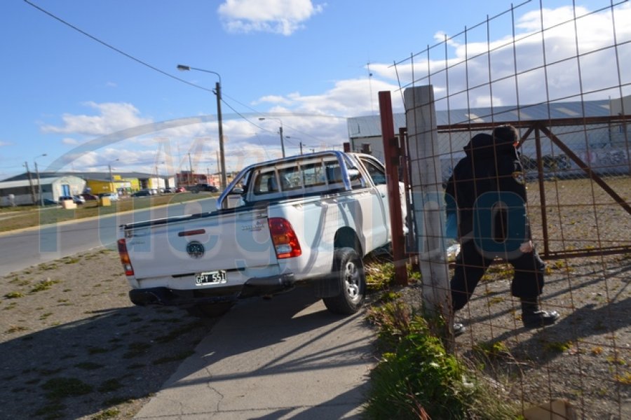 El rodado Hilux, dominio GPY 551, detuvo su marcha al colisionar contra un cerco realizado con maya sima. Producto del impacto sufrido termino derribando un poste que sostiene a ese improvisado cerco. En tanto, el vehiculo EcoSport tambien detuvo su marcha sobre la vereda de dicha intersección.