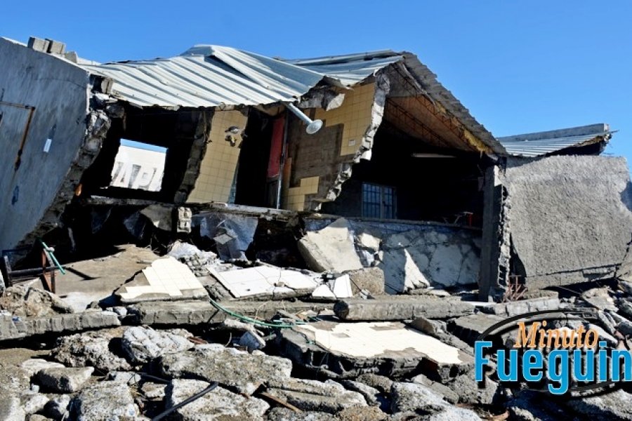 Producto de estas grandes olas una casilla abandonada, que se encuentra en el kilómetro 2815 de la ruta N°3 en el predio de Rapiflet. En ese lugar se encontraba construida una vivienda, la cual se encuentra desocupada. La misma, producto de grande oleaje colapso, quedado colgada sobre uno de sus lados, muy próxima a ser arrastrada por la marea.
